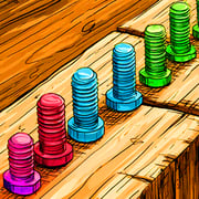 Klik baut mana saja. Baut akan jatuh ke celah di bagian bawah. Triknya? Dua baut dengan warna yang sama mendarat bersebelahan di celah? Boom. Terhapus otomatis. Warna berbeda? Mereka tetap di sana. Memblokir ruangmu. Rencanakan langkah atau kamu akan terjebak.